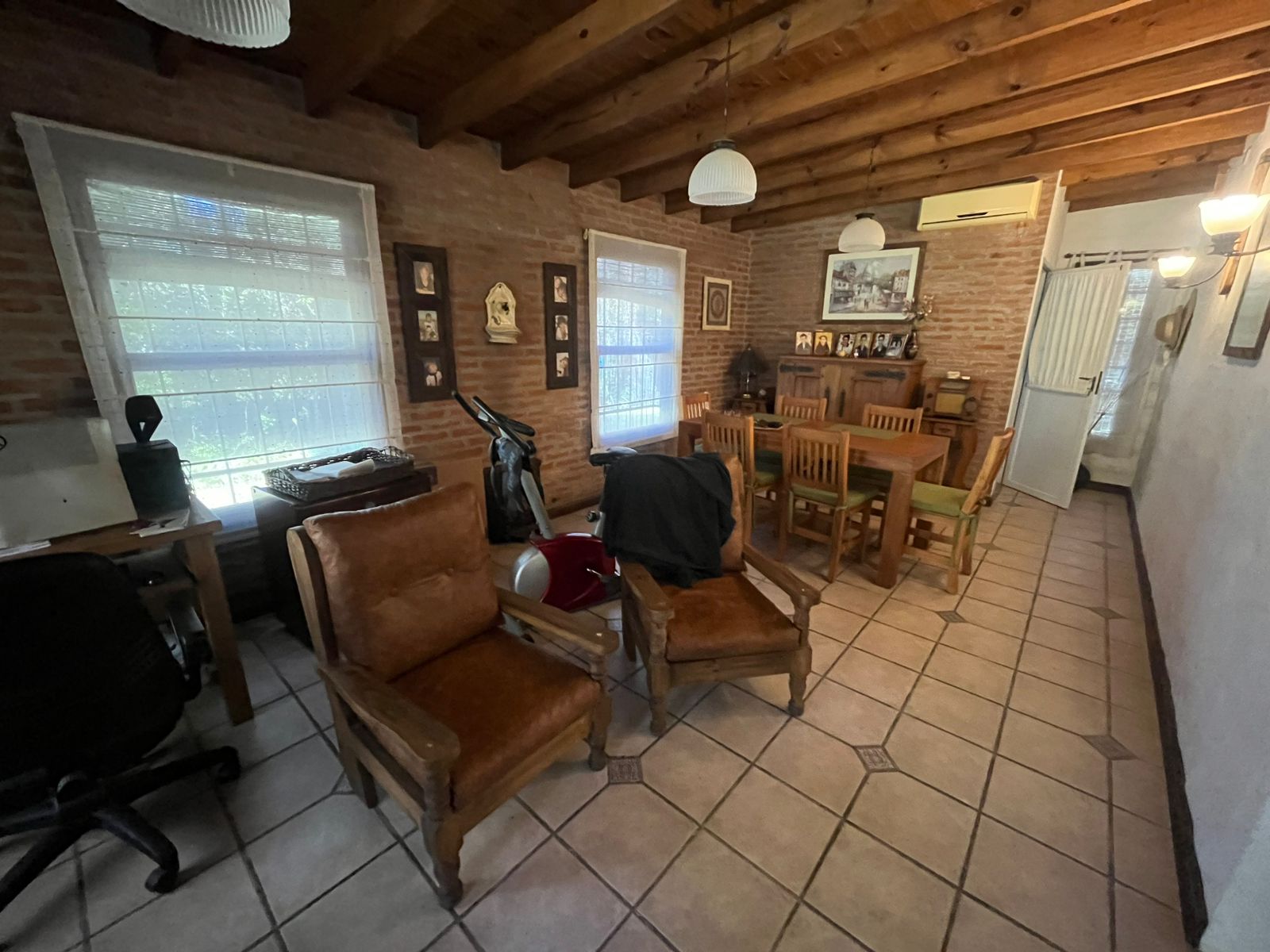 Cocina comedor, living con hogar, altillo, 3 dormitorios, 2 baños, quincho con parrilla y horno de barro, pileta con solarium y gran espacio verde con añeja arboleda.